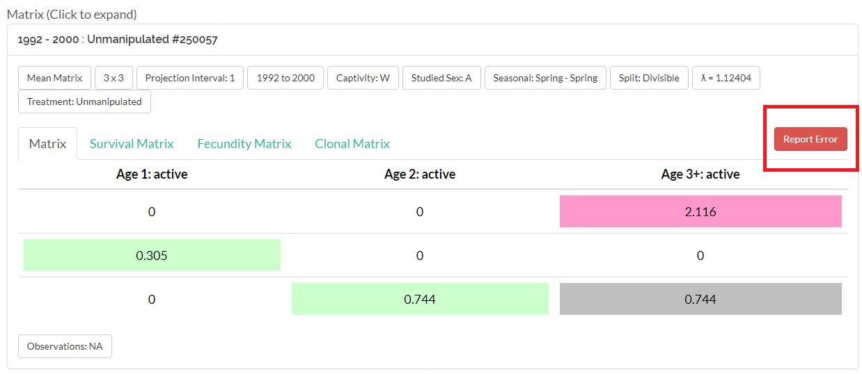 In the event you find an error in the database, each matrix on the website has an error reporting tool (pictured below), where users can describe the nature of the error as well as suggest a potential solution, if applicable.