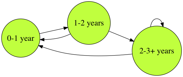 - 50% of adolescents aged 1-2 survive to become aged 2-3