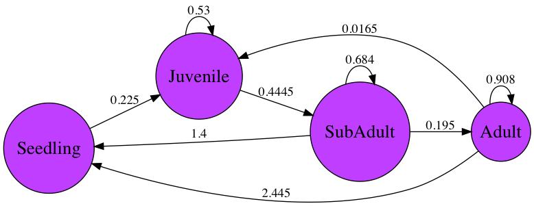 - This Rhododendron population is stage-structured and displayed here using 4 life stages.
